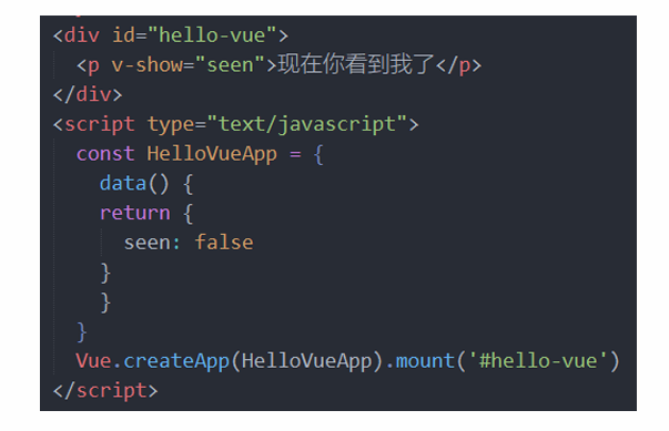 这里,v-if 指令将根据表达式seen 的值的真假来插入/移除元素。